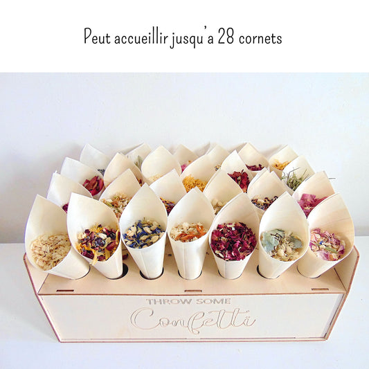 Support en bois pour cornet à confettis de fleurs séchées - Présentoir plateau de confettis de mariage pour 36 cônes