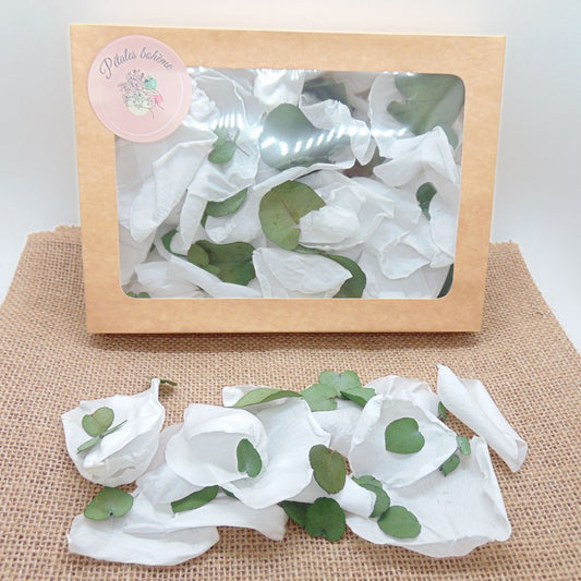 Eternelle - Pétales de Roses blanches feuille d'Eucalyptus
