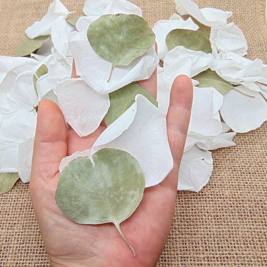 Pétales de Roses blanches Feuille d'Eucalyptus séché