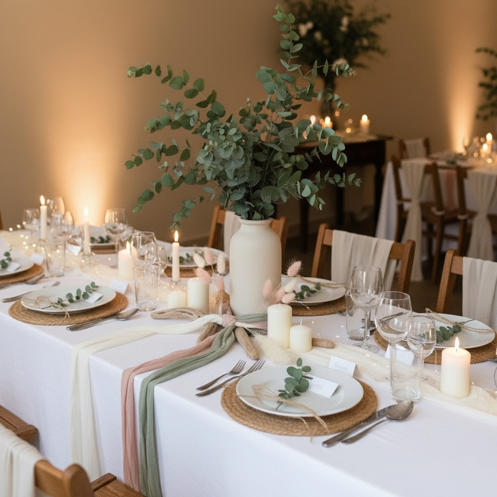 Sublimez votre décoration de mariage avec l'eucalyptus, il symbolise la positivité, la pureté et est perçu comme un porte-bonheur.