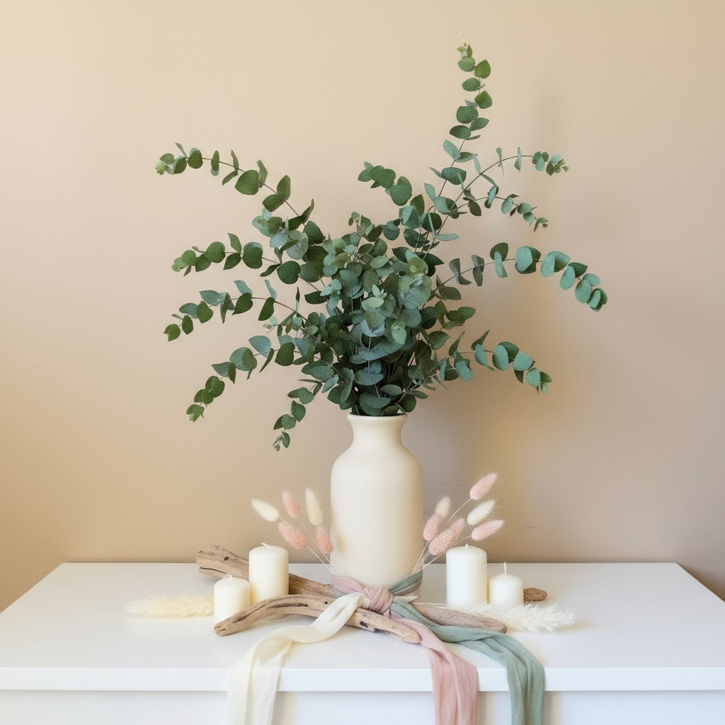 - Bouquet d'Eucalyptus Stuartiana et stabilisé de 65 centimètres de hauteur