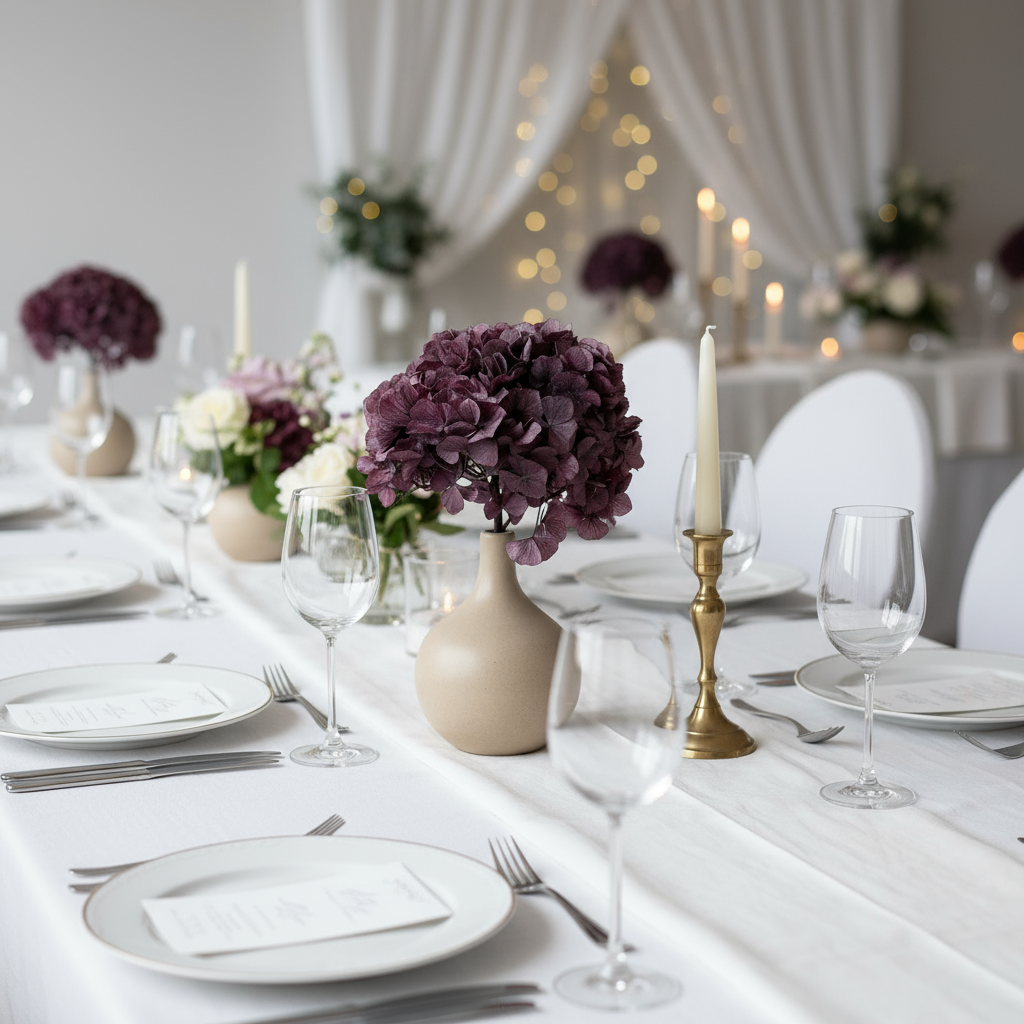 Apportez une touche vintage à votre décoration de mariage avec cet hortensia stabilisé prune. Ces fleurs éternelles conservent toute leur beauté naturelle sans entretien, offrant une élégance durable pour vos événements les plus précieux. Parfait pour sublimer vos compositions florales