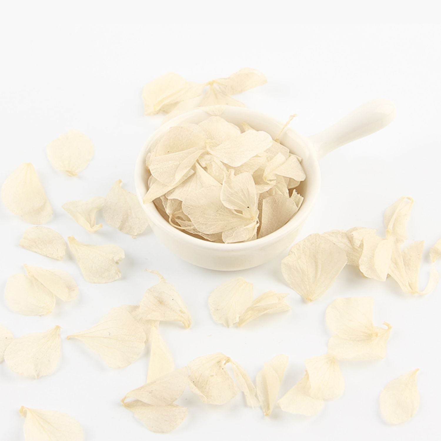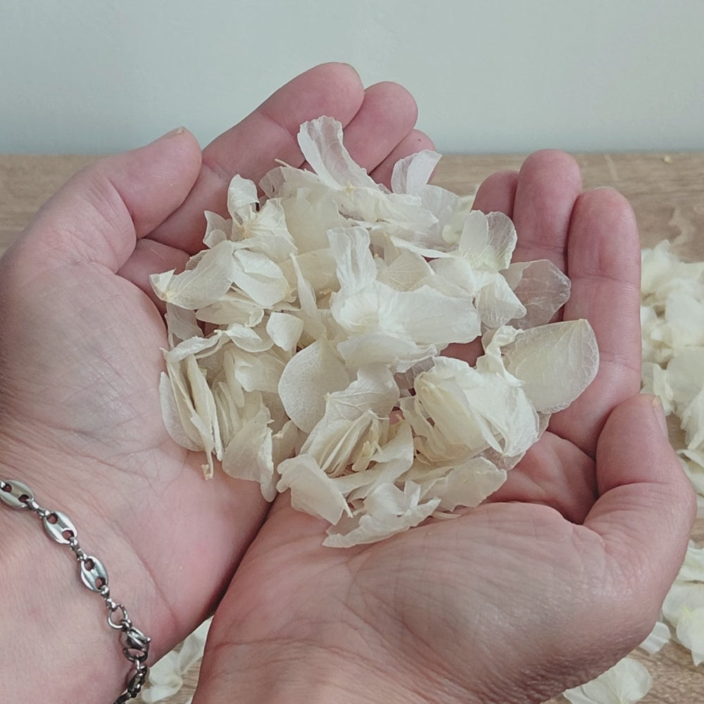 Confettis de mariage en pétales de fleurs séchées : Hortensia Blanc cassé ivoire